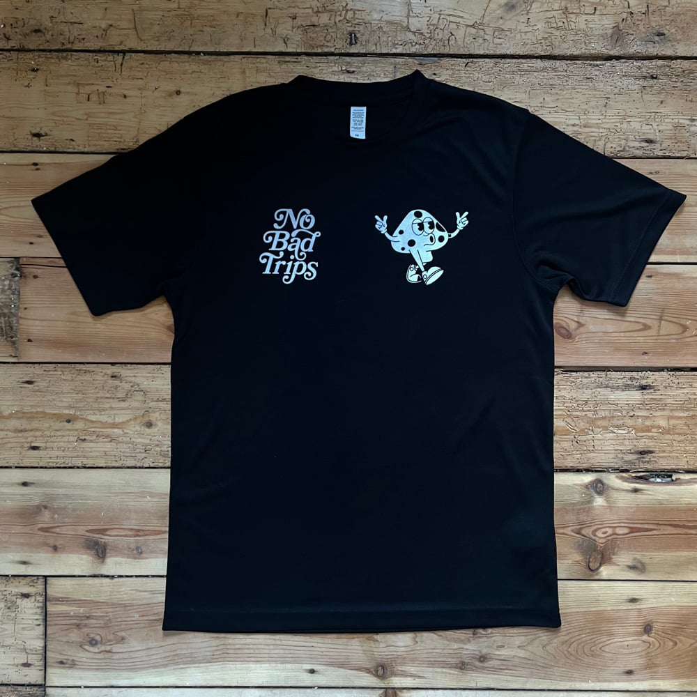 Printed by hand. Breathable tech material. Go for your normal t-shirt size.
