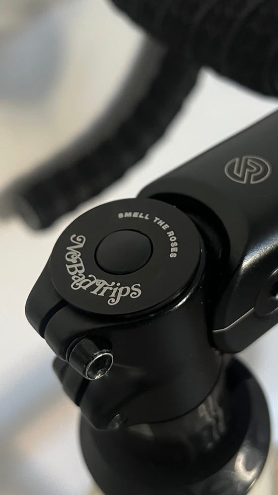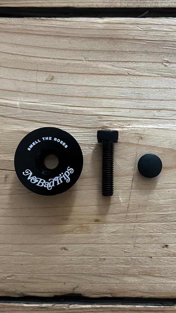 A small reminder to stop and smell the roses. 1 1/8” top cap with high tensile STEEL bolt and rubber finishing cap.